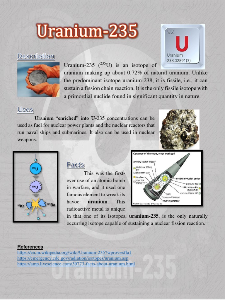 Uranium Chemical Element Reaction Water Uses Elements Metal Gas Number Name from www.chemistryexplained.com Uranium ore is the main source of uranium even though with the discovery of how wide spread it is in the earth's crust and scientist are looking for inexpensive ways to process it from the soil. Put the uranium ore in the shoe box and put the lid on it. There were no major uses of uranium until 1934 when it was discovered that uranium could emit beta rays when inundated with neutrons. Uranium 235, which alone constitutes 0.72% of natural uranium is the second common isotope of uranium in the nature. Then, get a shoe box with a lid and some rubber gloves. Uranium occurs also in seawater, and can be recovered from the ocean water. 2 enrico fermi was the man in charge of the team that had this discovery, and they were excited by the potential energy that could. The uranium natural consists of three isotopes radioactive (238u, 235u and 234u).