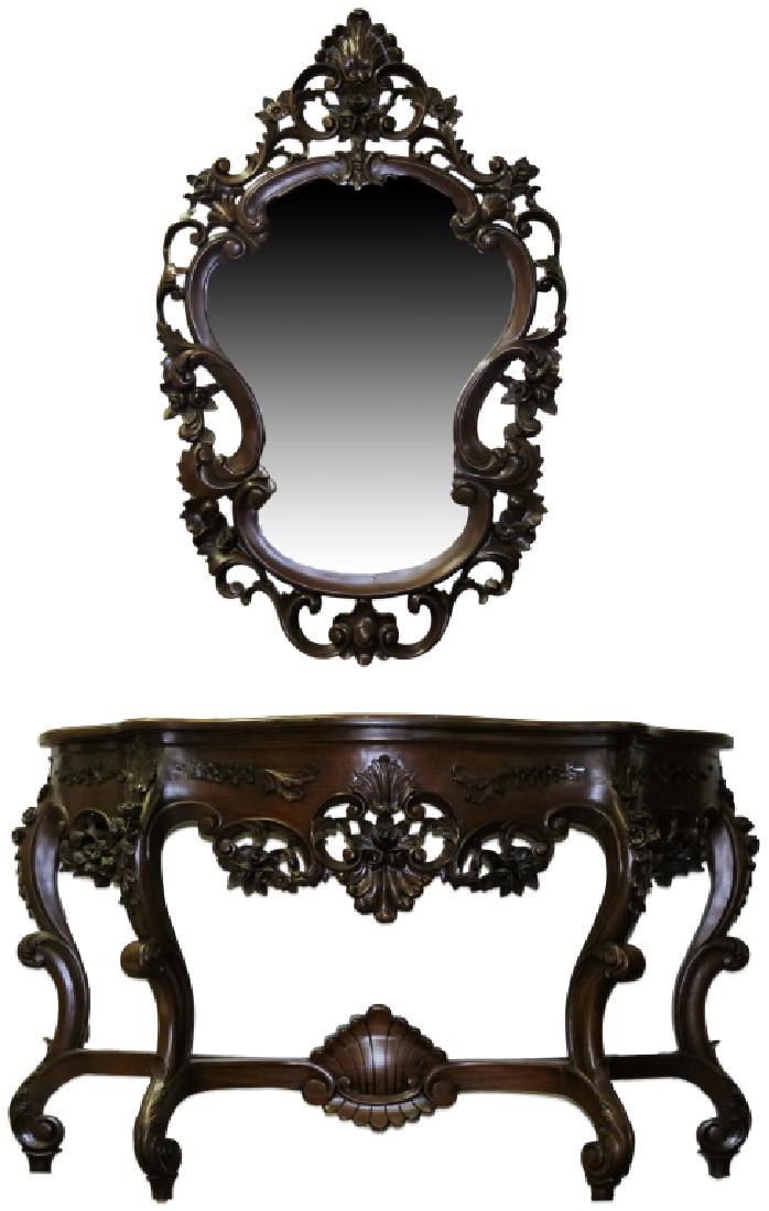 Foyer console table and mirror set.